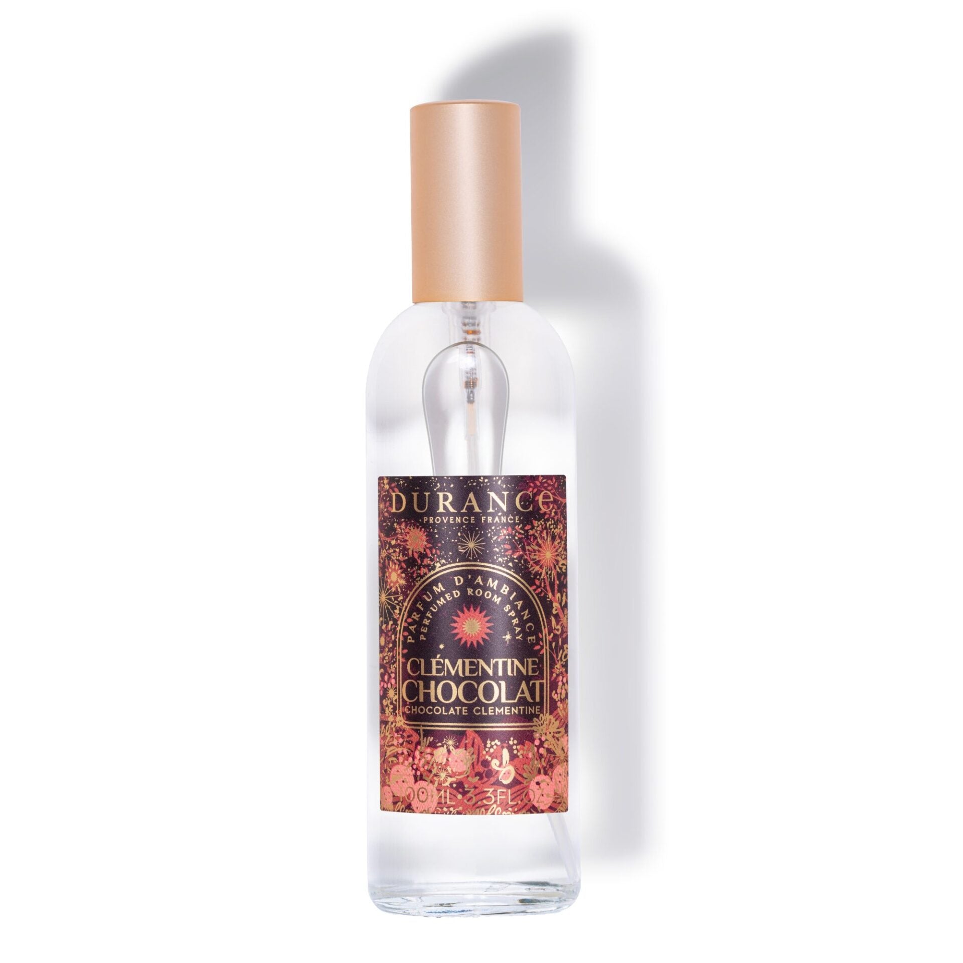 Durance Chocolate Clementine Room Spray 100 mL – festive citrus & chocolate fragrance with vanilla & musk. Approx. 80 uses.
