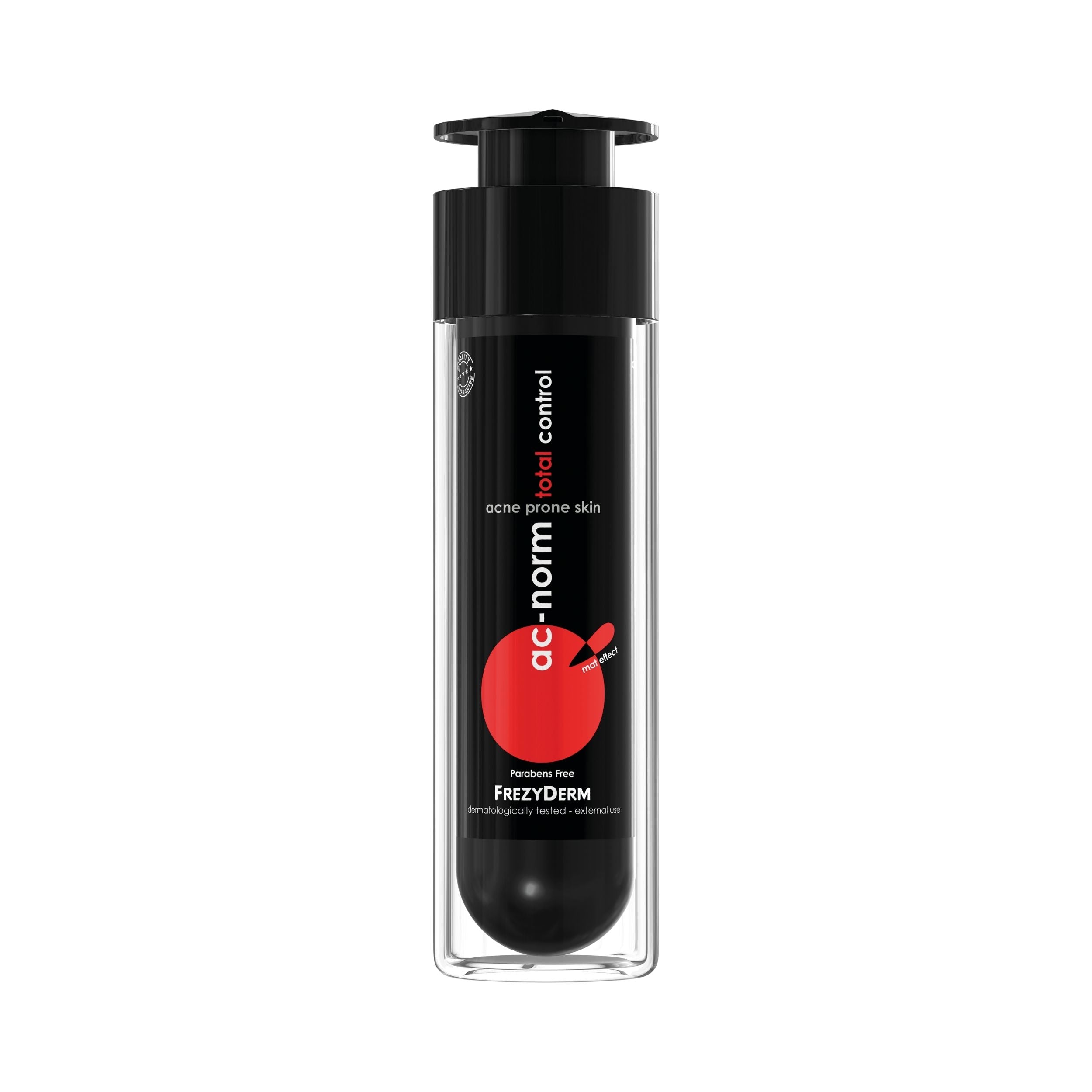 FrezyDerm AC-Norm Total Control 50ml is a dermatologically tested, targeted treatment specifically formulated for oily and acne-prone skin. It helps reduce blemishes, control excess sebum, and prevent new breakouts while maintaining the skin’s natural balance.